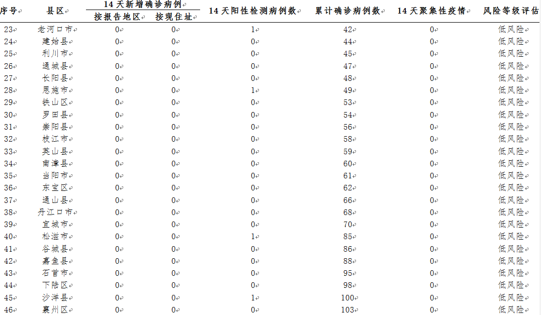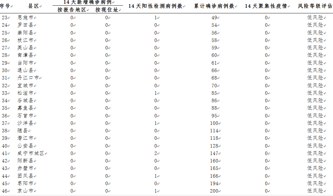 < p >原标题:湖北省高危市县,只剩一个< P > 3月16日,据《长江云报》报道,根据国务院新型冠状病毒肺炎疫情联合防控机制《新冠状病毒肺炎疫情分区域防控分级科学准确实施指南》中的风险划定标准,省疾控中心组织专家评估,截至2020年3月15日24时,湖北省有71个低风险市县,4个中等风险市县,1个高风险市县。